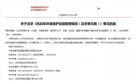 日前,国家市场监管总局和生态环境部联合发布《机动车环境保护召回管理规定(征求意见稿)》(以下简称《征求意见稿》),面向发改委、工信部、公安部、交通运输部、商务部及各有关单位征求意见。
