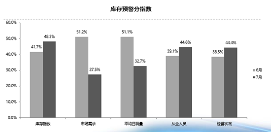 上周五(8月2日),中国汽车流通协会发布数据显示,7月汽车经销商库存预警指数为62.2%,环比上升11.8个百分点,同比上升8.3个百分点,达到年内第二高值。流通协会方面表示,从目前收集到的数据来看,7月销量将出现15%以上的同比下降。