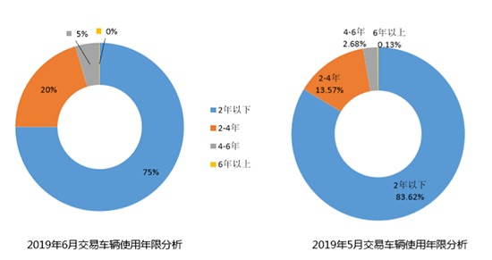 2019年上半年,使用年限在3-6年的二手车交易量最多,占比为43.35%。其次是3年内为24.56%,7-10年占比为21.23%,10年以上占比为10.86%。罗磊表示,二手车年限在3-6年的车辆较多,这也是近4年来一直维持的情况。