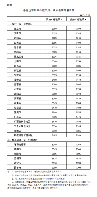 国家发改委表示,根据近期国际市场油价变化情况,按照现行成品油价格形成机制,自2019年8月6日24时起,国内汽、柴油价格(标准品,下同)每吨分别降低80元和70元。调整后,各省(区、市)和中心城市汽、柴油最高零售价格见附表。相关价格联动及补贴政策按现行规定执行。