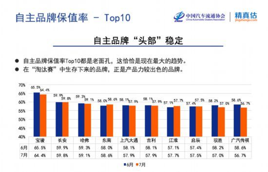 在关注了几个月的自主品牌保值率中,第一集团Top10除排序略有变化外,整体局面相对稳定,这也恰恰是最大的趋势。在一轮“淘汰赛”中生存下来的合资品牌,也正好印证了产品力较出色。