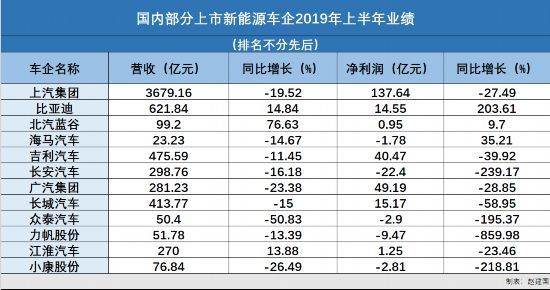 而上半年新能源车企的业绩也同样不太乐观。在有新能源汽车业务并已发布上半年财报的上市公司中,只有三家车企的净利润实现同比增长。