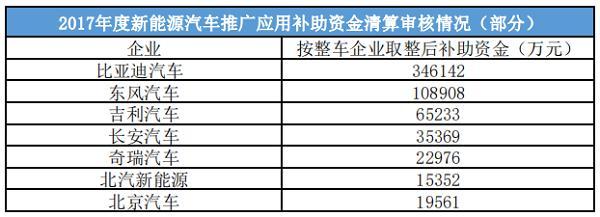 近日,工信部发布了《关于2017年度新能源汽车推广应用补助资金清算审核情况的公示》,超20万辆新能源汽车申请补贴,涉及补贴资金220.27亿元。其中宇通汽车、比亚迪(49.000, 0.57, 1.18%)和中通汽车三家将获得的补贴最多,分别为45.9亿元、34.61亿元和11.2亿元。