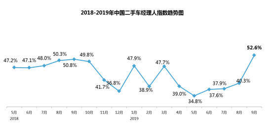 10月9日,中国汽车流通协会在月度形势分析会上发布,8月全国二手车市场交易量为119.86万辆,环比下降1.19%,同比增长0.92%,较7月增速明显放缓,受新车市场数月保持负增长拖累,二手车市场也呈现出缓增长的态势。同时发布的还有“中国二手车经理人指数”(UCMI)。本期UCMI结果显示,9月二手车经理人指数为52.6%,比8月上升12.3个百分点,回归到荣枯线以上,二手车市场表现有所好转。