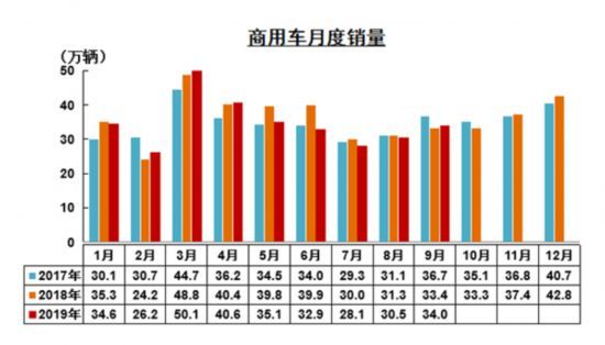 分月份来看,今年前三个季度,商用车共有四个月实现销量增长,分别是2月,商用车销量达到26.2万辆,与去年同期相比增加2万辆;3月,商用车销量达到50.1万辆,与去年同期相比增加1.3万辆;4月,商用车销量达到40.6万辆,与去年同期相比增加0.2万辆;9月,商用车销量达到34万辆,与去年同期相比增加0.6万辆。