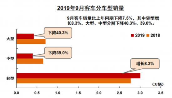 9月客车销量比上年同期下降7.5%,其中轻型客车增长8.3%,大型客车和中型客车分别下降40.3%、39.0%。