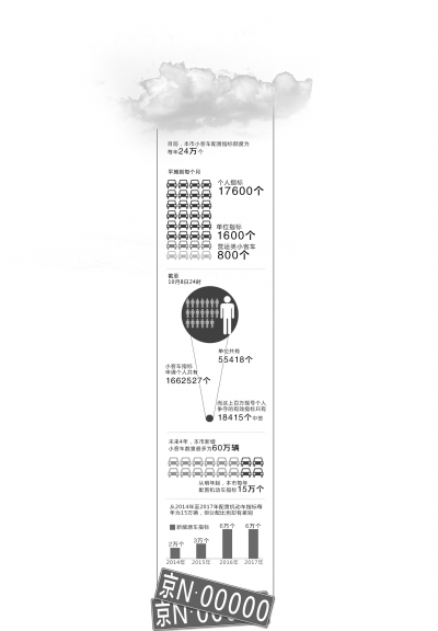 按照《北京市2013-2017年机动车排放污染控制工作方案》要求,2017年底,本市的汽车保有量将不超过600万辆。按照目前的增长量,本市机动车总量突破600万辆大关将被推迟大约19个月的时间。未来4年,本市汽车的增量将不超过60万辆,该数据比实施小客车购车摇号政策之前一年,单年的汽车增长量都少。