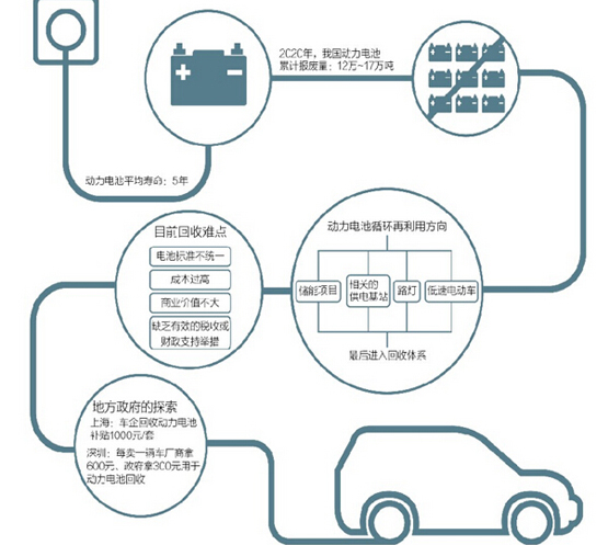 2012年7月出台的《节能与新能源汽车产业发展规划(2012~2020年)》就明确提出,要制定动力电池回收利用管理办法,建立梯级利用和回收管理体系,引导生产企业加强对废旧电池的回收利用,鼓励发展专业化的电池回收利用企业。