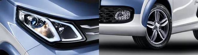 众泰E200车型于2015年上海车展首发亮相,凭借小巧的车身、2座式布局、电动后驱的动力布局,在入门级新能源代步车领域显得独树一帜。时尚的双色车身,搭配小跑流线设计,为了增强运动感,2018款众泰E200采用了15英寸五辐式花瓣状铝合金高亮黑轮毂搭配全新红色卡钳,看起来有点小跑车的范儿。正面看过去很有层次感,细节把控比较到位,雾灯处更是如同两颗宝石一样闪烁。