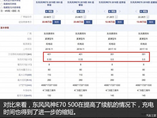 关于纯电动车,用户的另一个焦虑是充电时长。相对于续航的不断提升,近年来充电时长变化不大。此次车展期间,我们发现,东风风神E70 500提出可以在20分钟内,实现从30%充至80%,这快于行业基本水平。而其他车型快充基本保持在在半小时至2小时不等,慢充则保持在6至14小时之间,这与去年数据基本相似。