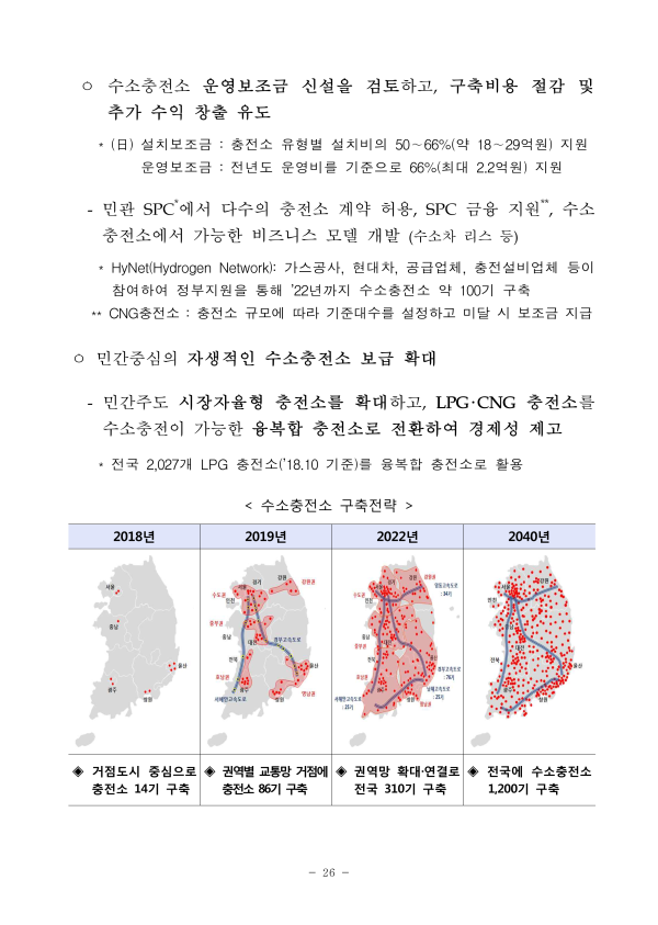 加氢站方面,目前韩国国内有14座加氢站,到2022年将增加到310座,2040年增至1200座。为此,韩国政府正在考虑为加氢站的建设和运营提供补贴,并放宽管制措施积极吸引民间资本的参与。