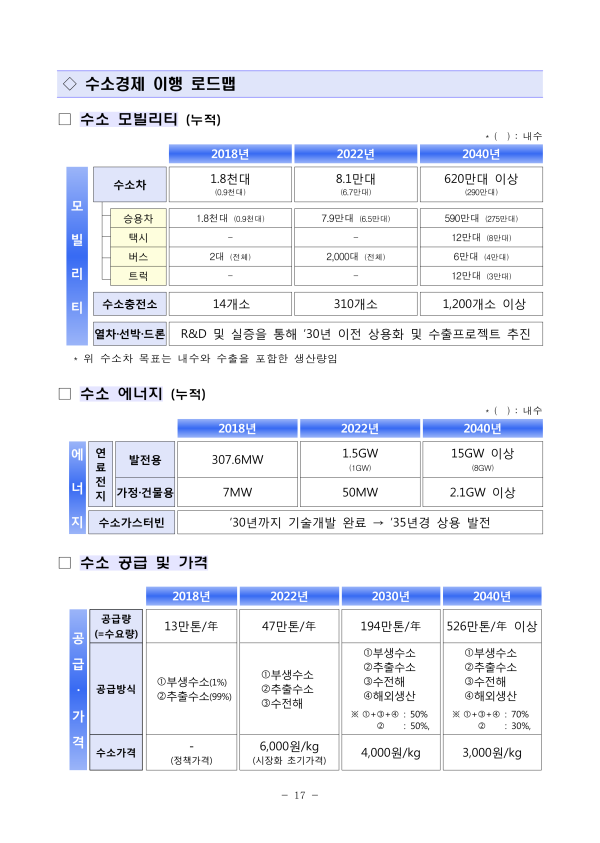 1月17日,在韩国蔚山市政府召开的氢能经济战略报告会上,韩国产业通商资源部正式对外发布了《氢能经济活性化路线图》,计划到2025年,将氢燃料电池乘用车的年产能提升至10万辆,价格减半。韩国总统文在寅也参与了报告会。