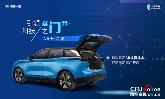 此外,奔腾E01首次采用AR投影技术,控制电动尾门开启。用户只需要携带蓝牙钥匙站在车外,距离尾门一米以内踩踏AR投影光斑,尾门即可开启。