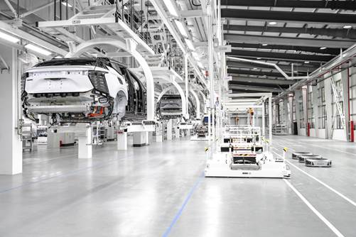 总装采用涵盖下单、排产、生产安排、质量管理、防错、设备管理、供应链管理等全业务链的智能在线生产运营系统,车辆装配采用无极升降AGV及超静音EMS输送技术,具备极佳的人机友好性及工艺柔性,大规模采用360° AGV物流配送系统,零件自动上线率大于90%,采用OTA高速无线技术,可实现车辆远程激活及程序灌装,采用首创量产车辆生产下线无人驾驶及泊车系统,采用研发级路谱进行下线车辆的道路测试,确保整车交付质量。