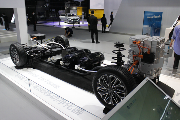 新能源汽车底盘展示模型。人民网鄂智超 摄