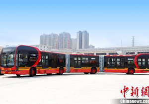 全球最长纯电动大巴在深问世 三节车厢全长27米