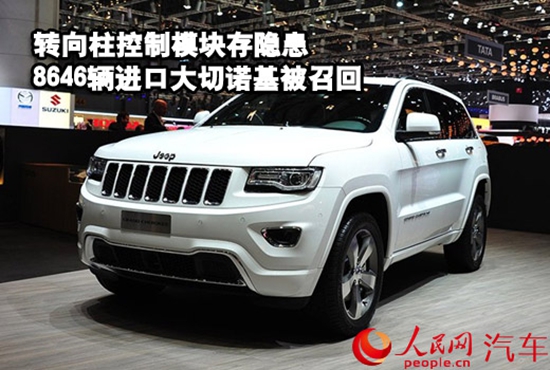 人民网北京12月16日电(曹淼)人民网记者从国家质检总局获悉:日前,克莱斯勒(中国)汽车销售有限公司向国家质检总局备案了召回计划,自2014年12月5 日起,召回部分2014年款进口大切诺基汽车,生产日期为2013年10月3 日至2014年4 月11日。据该公司统计,在中国大陆地区涉及8646辆。