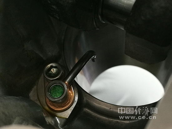 Kappa 1.4T发动机在活塞第一道气环和油环外围与缸壁接触面增加了Si-DLC涂层,在降低摩擦的基础上,实现油耗改善约0.3%。此外, Kappa 1.4T发动机还设计了机油冷却喷嘴,可以实时有效对活塞进行冷却降温,确保活塞始终处于高效工况,有效避免因过热带来的缸内爆震(张羽摄)。