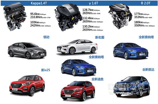截至目前,除了Kappa 1.4T发动机外,北京现代T动力家族共拥有1.4T、1.6T、2.0T三种排量的涡轮增压动力总成,匹配领动、新ix25,新名图、全新途胜,全新索纳塔(1.6T/2.0T)、全新胜达共6款产品,占据北京现代产品总数的50%。