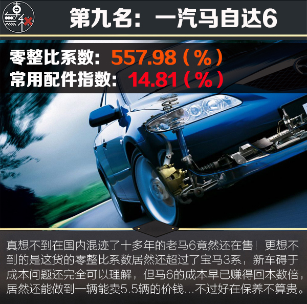 【搜狐汽车 车無秘】零整比指的是整车所有的装车配件的价格总和和整车销售价格的比值,零整比高就意味着保养维修成本高,而维修成本又将直接影响到保险保费价格,因此,零整比是购车的重要参考,也决定着日后养车费不费钱。