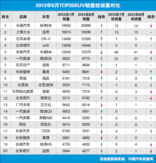 在经过了多月投诉量都在20以上的局面之后,今年有望冲击年度SUV销量冠军的哈弗H6终于在投诉量上逐渐稳定下来。当然,现在就断言其质量状况已经得到大的提升为时尚早,但从自然规律而言,连续如此的市场销量面前,产品的可靠性肯定会经历一个验证和提高的过程。不过,目前大部分投诉都与H6的变速箱有关,长城汽车对此也必须保持高度警觉。