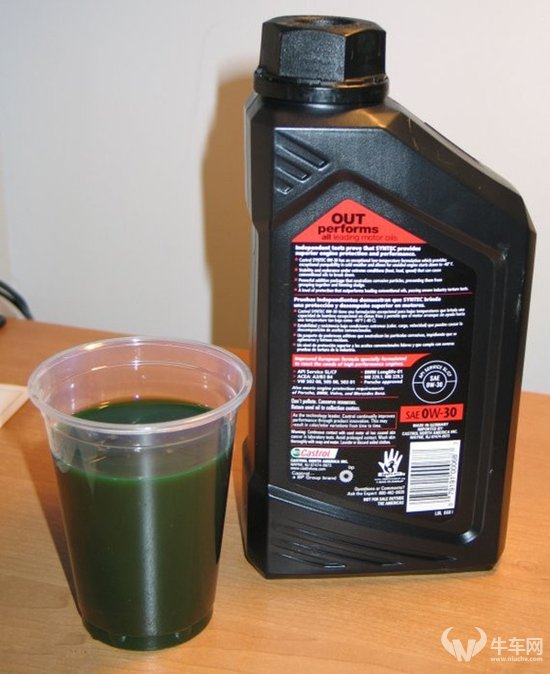 而且再想一想,汽车上所有的油液,除了一些不必要添加的添加剂,没有任何一样是无色透明的:玻璃水多为蓝色,冷却液多为红色、绿色,变速箱油和助力油是深红色,刹车油是黄色,机油也是金黄色,另外注意,不是所有的机油都是金黄色,嘉实多有一款给福特售后的机油就是绿色的,对你没看错,绿色的。