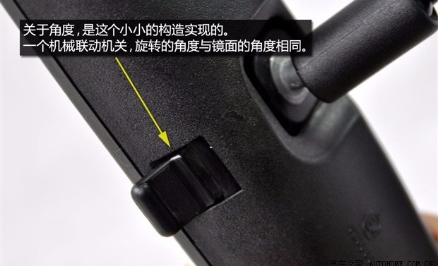 很多人买了车之后都羡慕别人的自动防炫目内后视镜,其实所有的车都带有内后视镜防炫目功能,只不过大部分是手动的。用起来特简单,看见镜子下面这个小舌头了吗,按下去,镜片会向下倾斜一个角度,晚上试试,后面车再晃大灯的时候,没事了吧。其实镜片里是双层的结构,向下偏移一个角度之后,炫光就被折射没了。