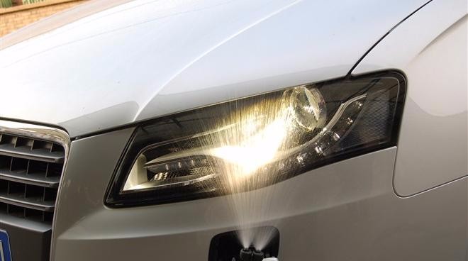 虽然很多车主买车的时候知道有这个功能,但由于在国内的用车环境其实几乎用不到这个,时间长了可能也就给忘了。很多人也不知道这个大灯清洗的喷头在哪里。其实前大灯下面的小方块就是喷头。大灯清洗功能在绝大多数车上都没有单独的按键(印象中见过普拉多的是有单独按键),那么如何开启大灯清洗功能呢。大多数情况下,打开示宽灯,再开启雨刷器喷水模式,此时大灯清洗装置将执行一次喷水动作,注意,仅执行一次,之后不管你再怎么喷水,这个功能也不会继续工作了。要想多次清洗大灯,要反复开启示宽灯才行。