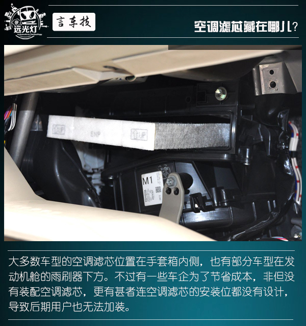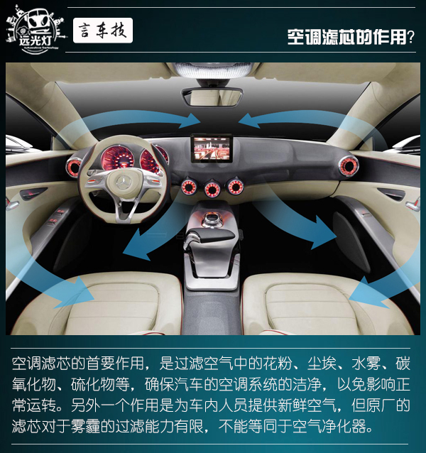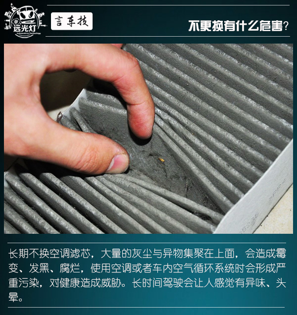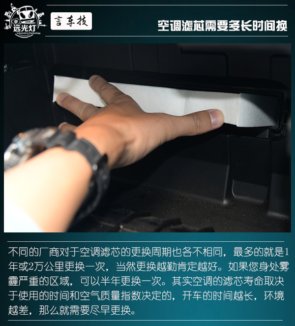 [搜狐汽车 远光灯](图/文 李鹏)随着冷空气的侵袭,跟雾霾战斗日子也日益临近。对于经常开车的朋友,是时候重视下空调滤芯的作用了。尤其是在北方风沙较多的区域,跑个几千公里,空调滤芯拆下来兴许能吓一你跳。今天远光君就来给大家讲讲空调滤芯的常识,另外针对雾霾又有什么好的对策。