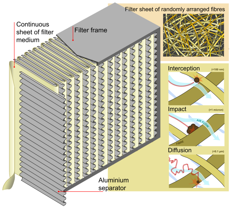 HEPA的原理并非是通过极小的孔径来阻隔颗粒物,那样会导致空气阻力太高。它是通过颗粒物的布朗运动和惯性运动来“捕获”细颗粒物的。对于直径在0.5微米以上,和0.1微米以下的物质过滤效果最好。而对于直径在0.1~0.3微米之间的物质,则相对较弱。这就是为何HEPA的过滤等级会拿0.3微米颗粒物的过滤比例作为评价标准。