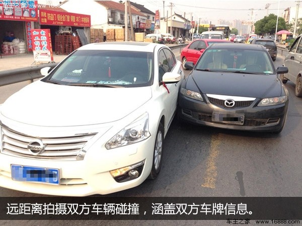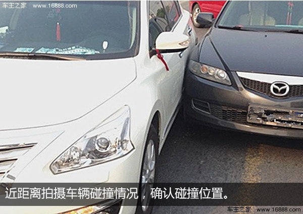 拍照目的:确认车辆碰撞的位置,了解是谁先碰的谁,怎么碰撞的,包含双方车牌,保留证据。