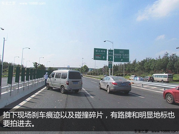 拍照目的:如有刹车痕迹可以拍下来判断车辆碰撞之前行驶动态,有无刹车意向,是直行还是有过转向行为,碎片可以用来判断车辆撞击力度及车速,更方便定责。