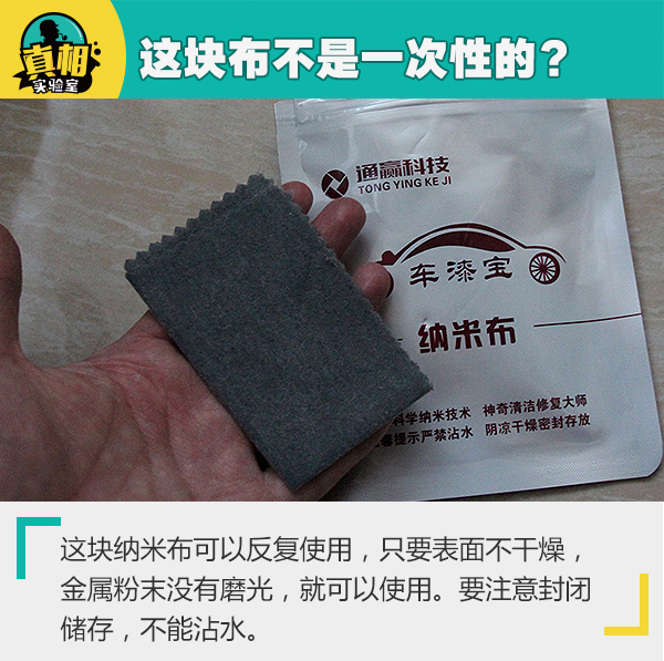 在这块纳米布的产品宣传中,称其表面覆有纳米级金属粉末,能够起到调和原车漆色差的作用,起到修复划痕的效果。这块纳米布的好评超过万条,究竟其效果真的如所说这么神奇吗?下面我们就来实地体验一番。