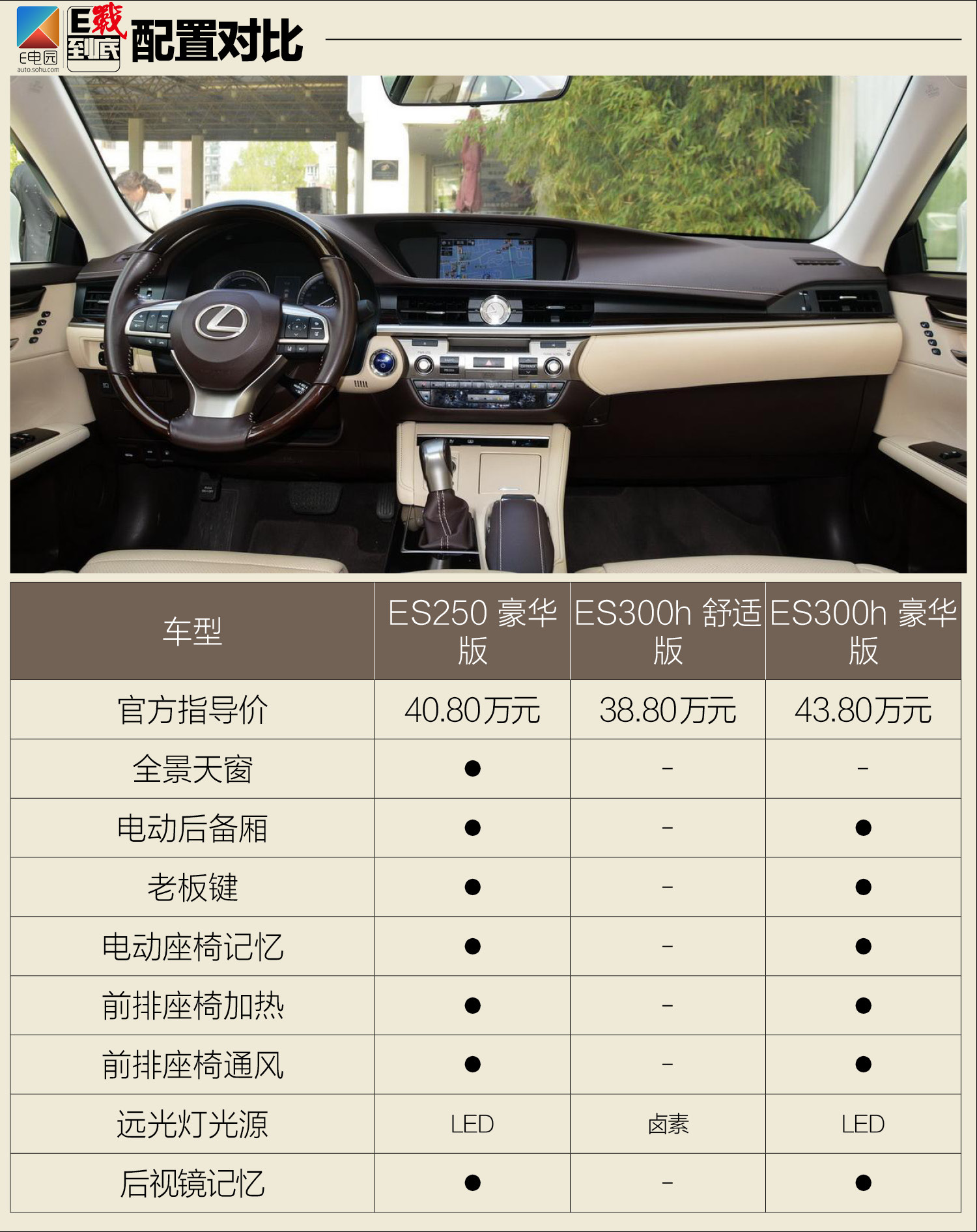 考虑到雷克萨斯ES的官方指导价,汽油版和混动版之间的差价其实并不算很多。而且按照现在在售的2917款雷克萨斯ES车型的配置来看,汽油版顶配车型的价格介乎于混动版两个配置之间,差价分别为2万和3万,并且两种动力的顶配车型配置基本保持一致,只差了全景天窗一项,但是和混动版低配相比则优势比较明显。