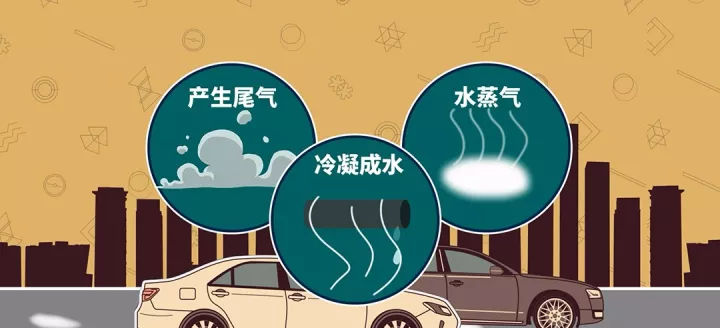 汽油在燃烧后除了产生尾气,还有很多水蒸气。冬天外边冷,水蒸气遇到冰凉的排气管尾部就会冷凝成水,这不是啥毛病。