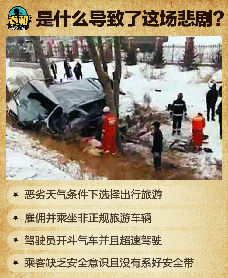 【搜狐汽车 真相实验室】(文:石嵩) 三天前,一则令人心痛的消息传遍了网络,北京林业大学9名即将毕业的大四女生,在乘车由哈尔滨前往雪乡的途中不幸遭遇严重交通事故,造成4死5伤;截至1月3日中午,5名受伤女生中仍有2人还在ICU中接受救治。据了解,这9名女大学生此次结伴去雪乡属于毕业出游,本应该马上翻开人生新篇章的她们却遭此不幸,着实令人扼腕叹息,这一事件也引起了社会各界的广泛关注。