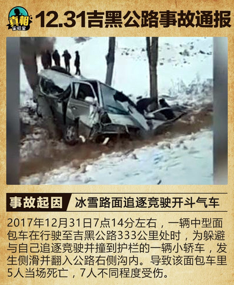 至此,共造成5死7伤的“12.31吉黑公路交通事故”便进入了公众的视野。