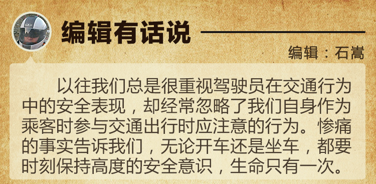 通过这起让人们扼腕叹息的交通事故我们总结出以下几点注意事项,既是从事故里总结出的经验教训,同时也算是对逝者的缅怀和尊重吧。