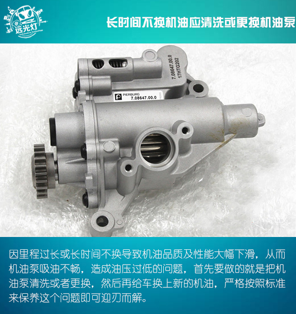 长时间不换机油机油泵吸油不畅,造成油压过低