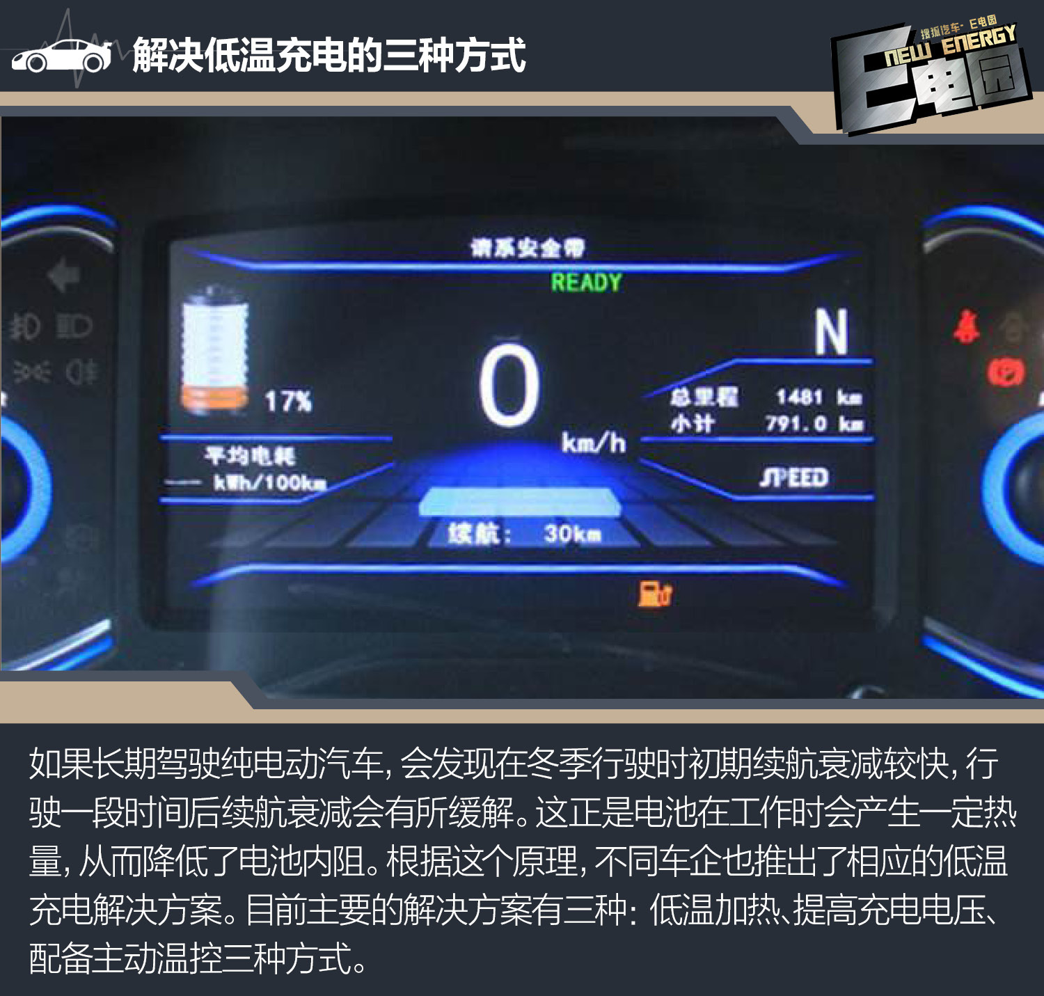 【搜狐汽车·E电园】(文:张丹)正值冬季最冷的时候,电动车的充电和续航问题就成为了多数车友最担心的事情。那么在低温环境的条件下,电池内阻升高、电离子传递效率降低,便是导致纯电动车在冬季续航缩水根本原因。除了续航衰减之外,在冬季低温环境下充电也会增加充电时间,甚至无法充满电等等。如何提升充电速度,不同品牌车型则配备了不同解决方案,此外一些小窍门也可以提升充电速度。