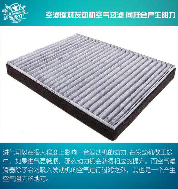 进气可以在很大程度上影响一台发动机的动力。在发动机做工途中,如果进气更畅顺,那么动力机会获得相应的提升。而空气滤清器除了会对吸入发动机的空气进行过滤之外,其也是一个产生空气阻力的地方。普通的空气滤清器是纸质做成,进气的阻力相对比较大。