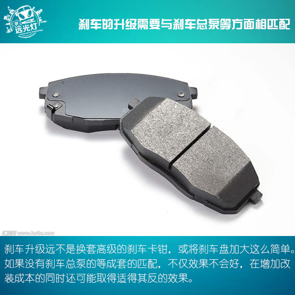 很多人对刹车升级的理解,或许是换一套高级的刹车卡钳,或者将刹车盘加大。但是这并不正确,如果没有刹车总泵的等成套的匹配,不仅效果不会好,在增加改装成本的同时还可能取得适得其反的效果。