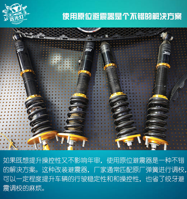 如果既想提升操控性又不影响年审,使用原位避震器是一种不错的解决方案。这种改装避震器,厂家通常匹配原厂弹簧进行调校,可以一定程度提升车辆的行驶稳定性和和操控性,也省了绞牙避震调校的麻烦。