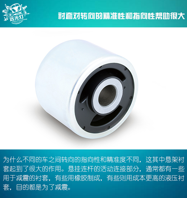 为什么不同的车之间转向的指向性和精准度不同,这其中悬架衬套起到了很大的作用。悬挂连杆的活动连接部分,通常都有一些用于减震的衬套,有些用橡胶制成,有些则用成本更高的液压衬套,目的都是为了减震。