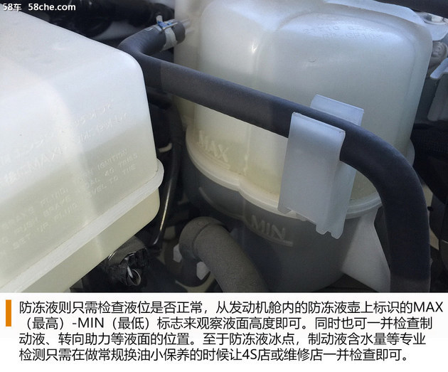 常规油液检查:机油液位、防冻液位 、补充玻璃水