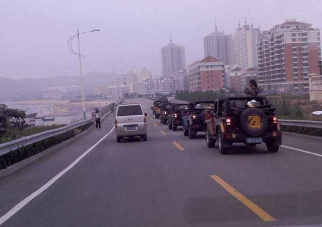 5、超越车队时,由于车队前后距离较长,所以要在超车视距良好的情况下,加速连续超越。若对面道路来车不能保证安全的横向间距时,应开右转向灯,见机插入车队,待对面车过后再超越车队。切忌边加速边靠近车队,以及在躲闪情况下或急打方向插入车队,更不能采取紧急制动,以防发生事故。