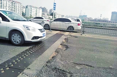 龟裂的柏油、破损严重的路面,经常开车走彩虹桥的车主对此都比较熟悉。为什么会发生那么多爆胎事故?记者在实地勘察过程中发现,这里的桥面除了路面不平外还有铺有近一指厚的钢板,而桥梁接缝处翘起的钢板棱角,在车辆通过时,都会对轮胎造成不小威胁(如上图)。每天上下班都要经过这里的车主赵先生告诉记者:“每次过彩虹桥都不敢开太快,不光是担心爆胎,本来路就烂,车速太快颠得也不好受。”