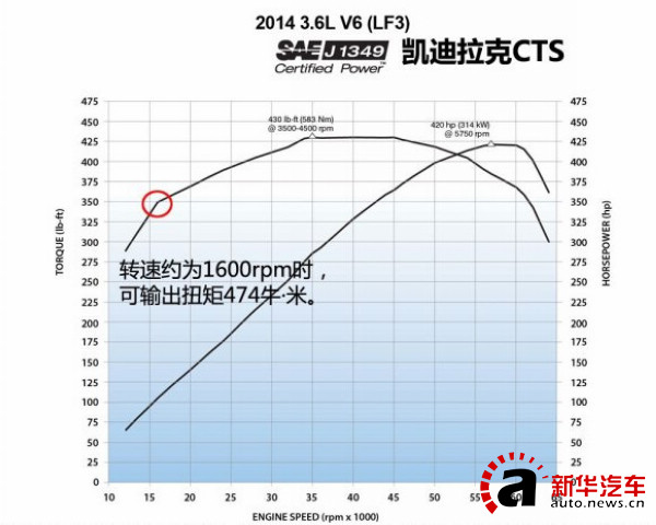 值得注意的是,和传统的涡轮增压发动机采用的风冷式中冷不同。新CTS Vsport车型的3.6T发动机采用了水冷式中冷。工况曲线上不再有传统涡轮增压车型的扭矩平台,输出更类似于自然吸气发动机。