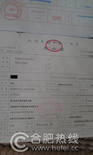 购车发票(图片来自于合肥论坛原帖)
