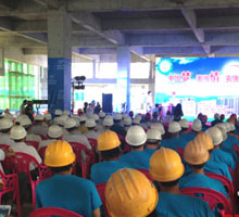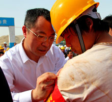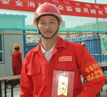 在深圳市汉国城市商业中心施工现场,300多米的高空中,动臂塔吊从清晨忙碌至傍晚。在建筑施工这个高危行业中,95%的受伤来自于农民工。这里活跃着一支特殊的队伍——农民工安全督察队。蒋礼是这支农民工安全督察队的队长。每天清晨,他总是认真整理好工装、安全帽,戴好安全督察员袖标,在微亮的夜色中开始一天忙碌的工作。